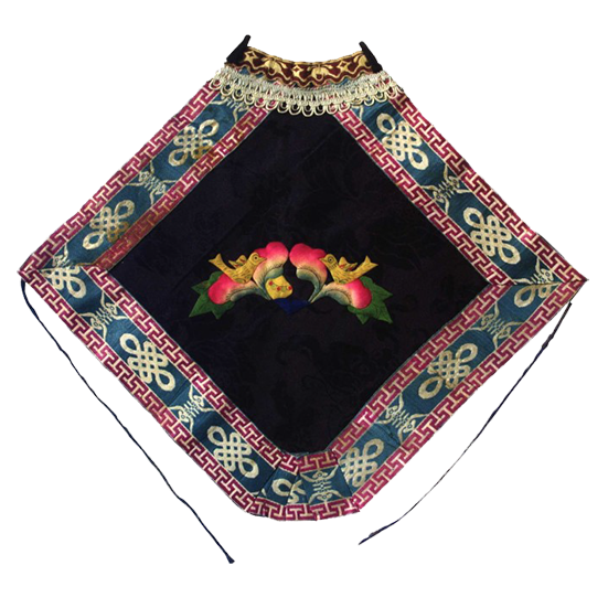 In Chinese mythology there are eight immortals. Each carry a treasure that has been bestowed with their own power. The treasures embroidered on this Dudou express the deep desire for good luck.