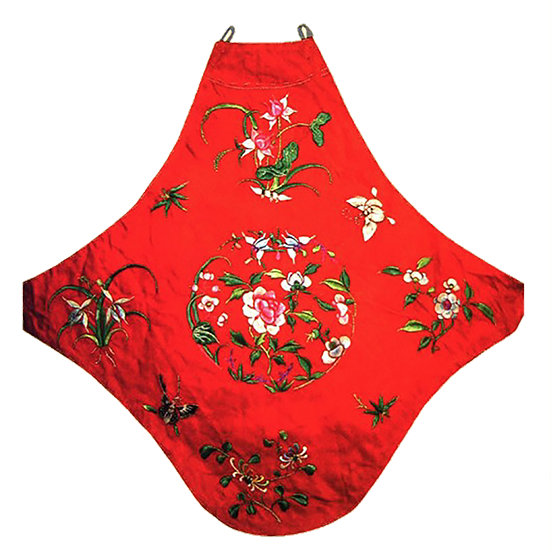 Throughout the development of Chinese women lingerie, ancient Chinese lingerie has been used to express the yearns for beauty and the performance of feeling and of body in delicate, subtle ways. Almost every piece of lingerie has a theme and story. The Dudou is a bodice that has been used by women since ancient China. The production cycle of each piece lasts from a few months to several years, and there are differences in craft techniques used to produce them. The Chinese women of the past conveyed the voices of their hearts through the sewing, and colourful totems to convey their deep wishes.